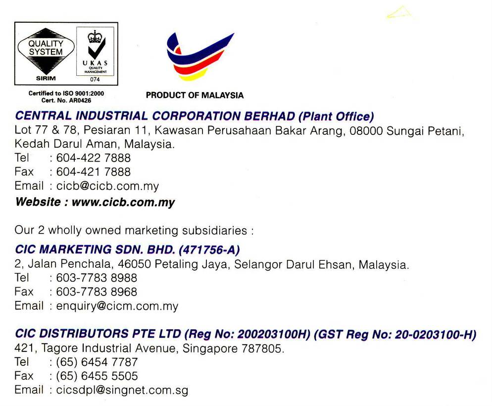 CENTRAL INDUSTRIAL CORPORATION BERHAD CICB CIC a manufacturer of functional masking tapes which pioneer on industrial hi.